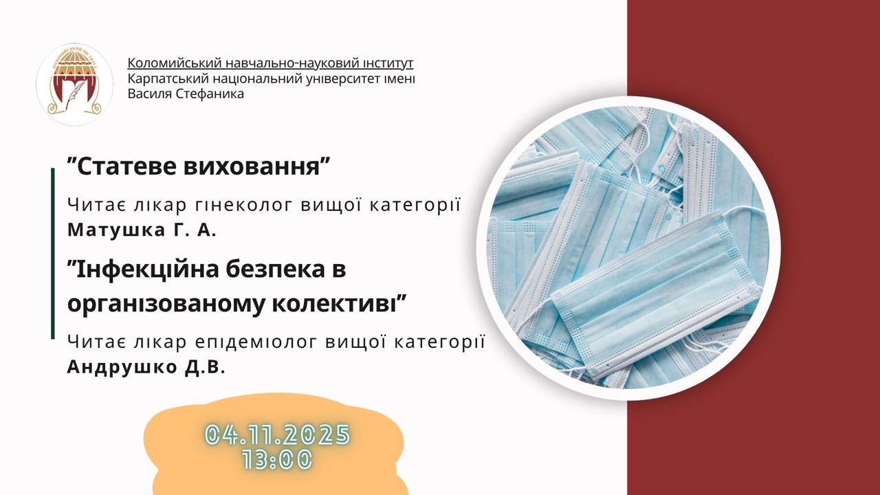 У Коломийському навчально-науковому інституті відбувся важливий та інформативний цикл лекцій для студентів 1 курсу спеціальностей «Початкова освіта», «Середня освіта (Фізична культура)» та «Середня освіта (Українська мова і література)». Запрошені фахівці – лікарі вищої категорії – поділилися ключовими знаннями, необхідними для формування відповідального ставлення до власного здоров’я та безпеки в колективі.