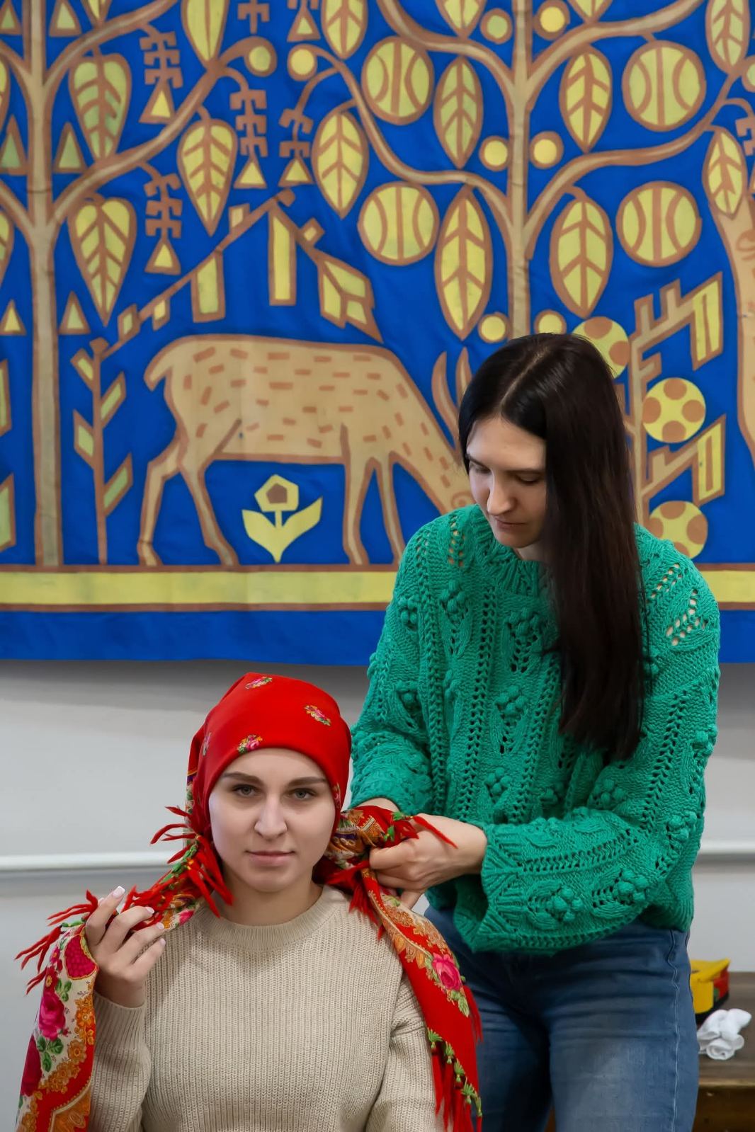 Фотографії, зроблені під час зустрічі, передають процес пов’язування хусток, атмосферу занурення в традицію та щиру зацікавленість учасниць культурною спадщиною нашого краю.